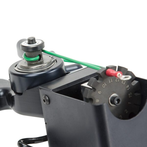 Der MR06-200 Draht-Crimp-Zugsensor ist eine handbetriebene Lösung zur Messung der Abzugskräfte von Draht-Crimps. Die ergonomischen Griffe und der praktische Spannmechanismus machen Messungen vor Ort zu einem Kinderspiel für Anwendungen bis zu 1000 N. Drücken Sie die Griffe zusammen, um die Spannung auf die Probe zu erhöhen, bis ein Bruch auftritt. Die Spitzenkraft wird von einem Mark-10-Anzeigegerät aufgezeichnet. Ein drehbarer Revolverkopf mit Schlitzen in verschiedenen Grössen eignet sich für eine breite Palette von Drahtdurchmessern bis zu 6,4 mm.