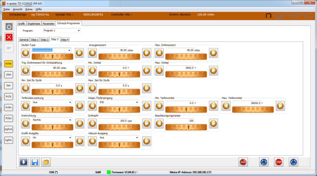 Software zur Programmierung der Schraubparameter,