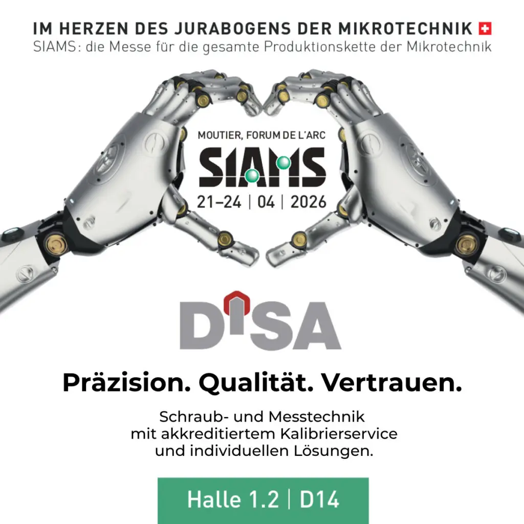 Wir sind an der SIAMS 2026 dabei – der Fachmesse für die gesamte Produktionskette der Mikrotechnik. Januar 12, 2026 Januar 12, 2026 … Wir sind an der SIAMS 2026 dabei – der Fachmesse für die gesamte Produktionskette der Mikrotechnik. Weiterlesen